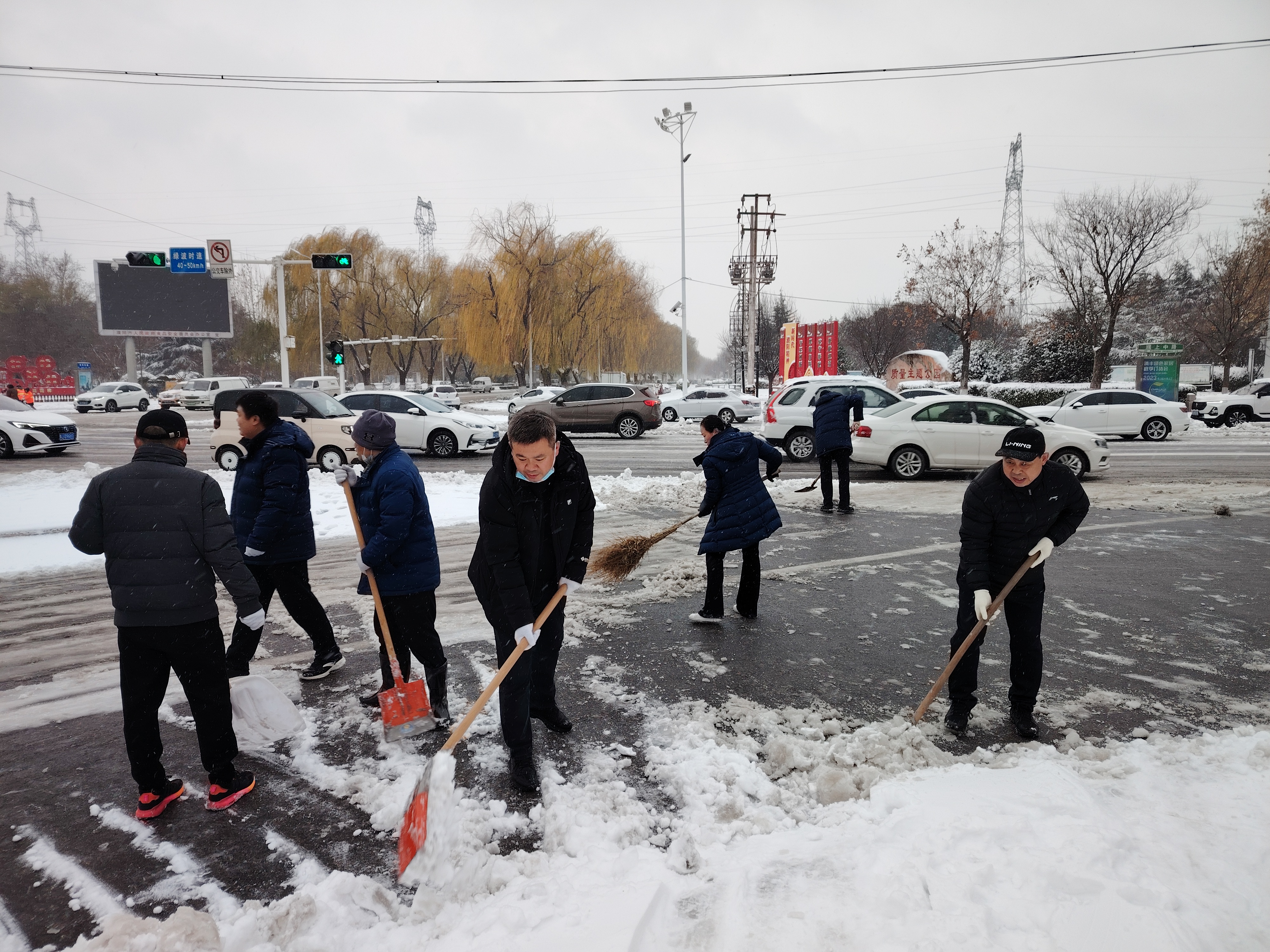 公司坚持“领导带头、全员参与、迅速彻底”的原则,对濮上路、胜利路等责任区域上的积雪薄冰进行清理。广大干部职工不惧严寒、分工有序,大家手拿铁锹、铁铲、推雪板等工具,默契配合,干劲十足,很快使责任区域内道路畅通。截至目前,我公司共出动干部职工100余人次,全面完成责任路段、各厂区、营业大厅门前的清雪除冰工作。