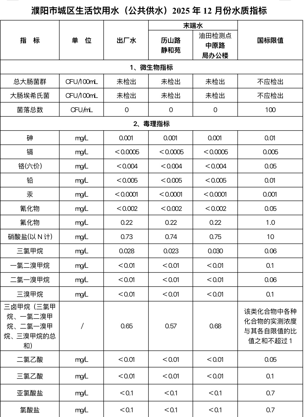 2025年12月份水质指标